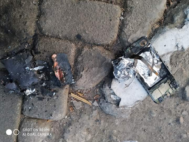 Ternyata baru saja Bapak sampai rumah, tampak tukang servicenya tadi datang tergopoh-gopoh. Dia mengatakan kalau handphone Bapak meledak. Astaghfirullah Bapak sangat terkejut dan lalu bergegas menuju tempat service tadi. Sesampainya disana Bapak melihat handphonenya sudah gosong menghitam.